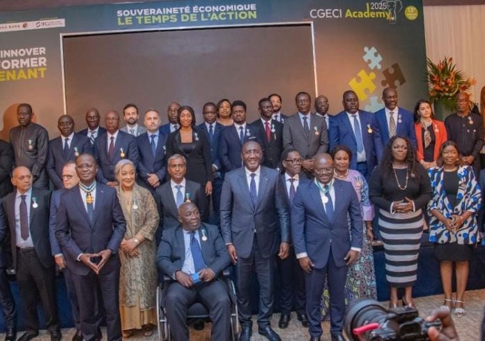 Le Ministre du Commerce et de l’Industrie, Dr. Souleymane Diarrassouba, a présidé, le 29 septembre dernier au Sofitel Hôtel Ivoire d’Abidjan, la cérémonie de décoration de 56 personnalités dans l’Ordre du Mérite commercial et industriel, en marge de la 13e édition du CGECI Academy. Cette 2e promotion compte 6 Commandeurs, 20 Officiers et 30 Chevaliers. Parmi les figures distinguées : le Premier ministre Robert Beugré Mambé, l’ancien Premier ministre Patrick Achi, le Président de la CGECI Ahmed Cissé, l’ex-président de la CGECI Jean-Marie Ackah et l’homme d’affaires Koné Dossongui. Le ministre a rendu hommage au secteur privé, qualifié de moteur de l’économie ivoirienne, qui génère environ 100 000 emplois par an et contribue à plus de 75 % du PIB, grâce à la hausse continue des investissements privés, passés de 6,3 % du PIB en 2011 à 15,3 % en 2024. Au nom des récipiendaires, Kanigui Ouattara, Président de la FIPME, a salué la vision du Chef de l’État en faveur d’une économie tournée vers l’excellence et la valorisation de l’initiative privée.