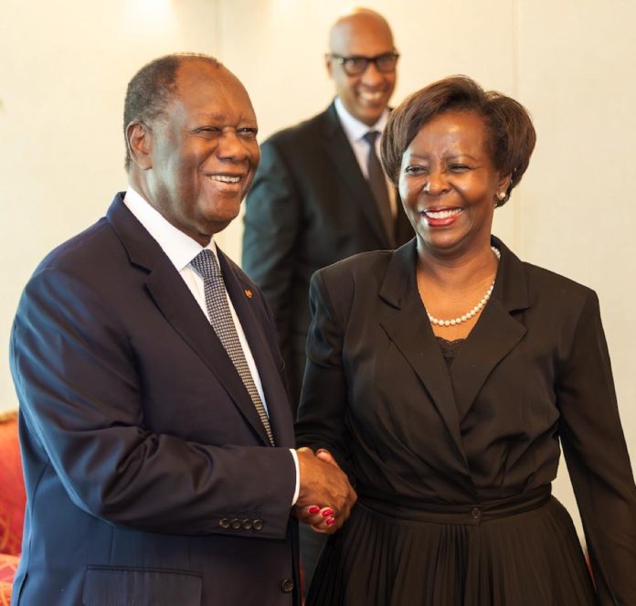 Le Président de la République, Alassane Ouattara, a reçu en audience, mardi 30 septembre 2025, la Secrétaire générale de l’Organisation Internationale de la Francophonie (OIF), Louise Mushikiwabo au Palais de la Présidence de la République. En visite à Abidjan pour la 13e édition de la CGECI Academy, placée sous le thème « La souveraineté économique », Mme Mushikiwabo a échangé avec le Chef de l’État sur la coopération entre la Côte d’Ivoire et l’OIF, ainsi que sur les grandes questions d’actualité internationale, africaine et géopolitique. La rencontre s’est tenue en présence du ministre directeur de Cabinet du Président, Fidèle Sarassoro, de la ministre de la Culture et de la Francophonie, Françoise Remarck, et de la secrétaire générale de la Présidence, Masséré Touré-Koné.