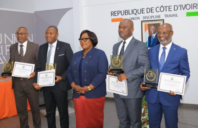 La ministre d’État, ministre de la Fonction publique et de la Modernisation de l’Administration, Anne Désirée Ouloto-Lamizana, a remis, le lundi 10 novembre 2025, les distinctions aux lauréats classés 2e et 3e du Prix national d’excellence (PNE) 2025, dans les catégories « Administration publique la plus innovante » et « Meilleur fonctionnaire et agent de l’État ». La Direction de la qualité et de l’accompagnement du changement (DQAC) du ministère de la Fonction publique a décroché la deuxième place, suivie de la Cellule d’information des opérations économiques (CELIOPE) du ministère du Budget et des Finances. Dans la catégorie du meilleur fonctionnaire, l’ingénieur agronome Ahoulé Ange Gervais, du ministère des Ressources animales et halieutiques, a été classé deuxième, tandis qu’un ingénieur des services de santé de l’Autorité de radioprotection, de sûreté et de sécurité nucléaires (ARSN) a occupé la troisième place. Les lauréats ont chacun reçu un diplôme, un trophée et un chèque de 1,5 million F CFA pour le deuxième et 1 million F CFA pour le troisième. Mme Ouloto-Lamizana a félicité les récipiendaires pour leur dévouement et les a exhortés à demeurer des modèles d’excellence et de rigueur dans le service public. Le porte-parole des lauréats, Yao Konan Florant, a salué le leadership de la ministre et réaffirmé leur engagement au service de la nation. Pour rappel, l’INPHB et Achou Brou Carine avaient été primés premiers lors de la cérémonie officielle du 4 août 2025 au Palais présidentiel.